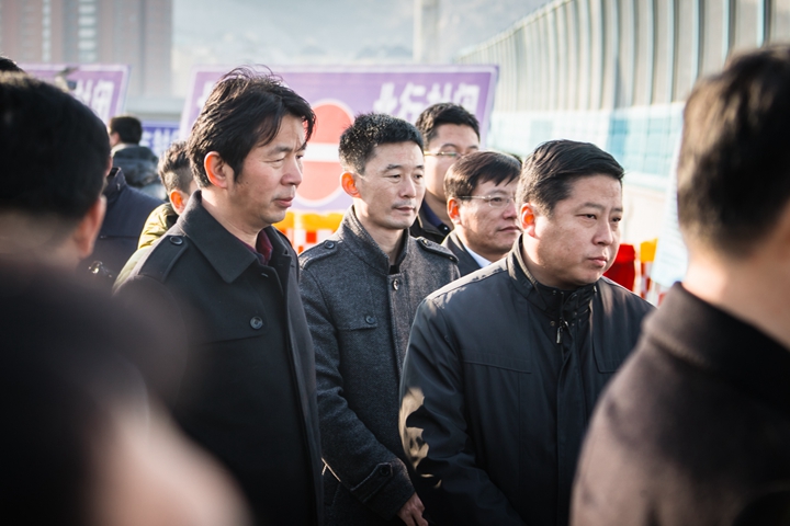 12月6日,二環(huán)南路快速路及隧道全線完工通車。省委常委、市委書(shū)記王文濤,市委副書(shū)記、市長(zhǎng)楊魯豫現(xiàn)場(chǎng)察看了通車情況;市委常委、常務(wù)副市長(zhǎng)孫曉剛和市政府秘書(shū)長(zhǎng)李華賢參加活動(dòng)。市市政公用事業(yè)局王繼東局長(zhǎng)、修春海副局長(zhǎng)介紹了工程建設(shè)情況,二環(huán)南路項(xiàng)目部主任楊峰、集團(tuán)董事長(zhǎng)蔣永才,副總工程師、道橋一所所長(zhǎng)鄭明萬(wàn),道橋三所所長(zhǎng)王曉媚及部分設(shè)計(jì)、施工、管理人員一同見(jiàn)證了這一激動(dòng)人心的時(shí)刻。