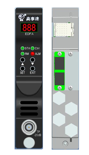 GSDT-EDFA系列1550nm光纖放大模塊是設(shè)計(jì)與高性能光纖傳輸網(wǎng)絡(luò),可同時(shí)傳輸模擬信號(hào)和數(shù)字信號(hào)GSDT-EDFA系列產(chǎn)品利用單個(gè)或者雙個(gè)高性能的980nm泵浦激光器,通過獨(dú)特的設(shè)計(jì)技術(shù),以較低的噪聲系數(shù),提供從14dBm到23dBm的輸出光功率。產(chǎn)品具有高級(jí)的MCU控制電路來檢控模塊的全部參數(shù)和報(bào)警狀態(tài)。所有參數(shù)都可以通過前面板的LED顯示燈或者用控制軟件從本地或者遠(yuǎn)程來控制模塊。