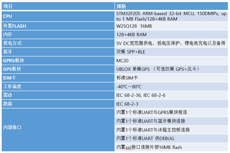 設(shè)備周期上報溫度、濕度、電量,以及各種工作狀態(tài)的數(shù)據(jù),IOT核心板接收以后進(jìn)行數(shù)據(jù)分析,并上報數(shù)據(jù)和當(dāng)前GPS信息,用戶可以隨時查看,若發(fā)現(xiàn)冰箱狀態(tài)異常系統(tǒng)將即時上報。